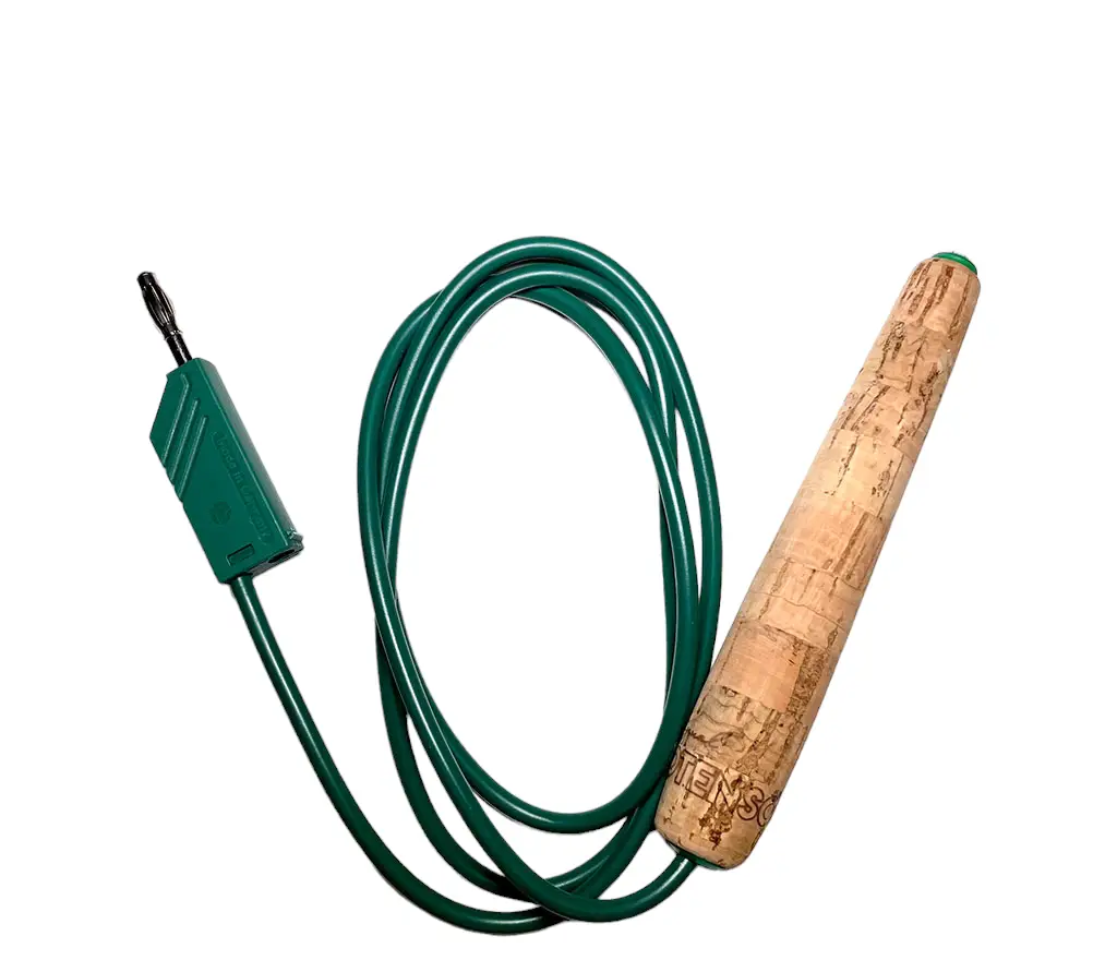 De scansensor kan in het uiteinde van het handvat van de biotensor worden gestoken en dient als verbinding van de tensor naar het testobject. De kabel voorkomt grotendeels dat het lichaam trillingen absorbeert.